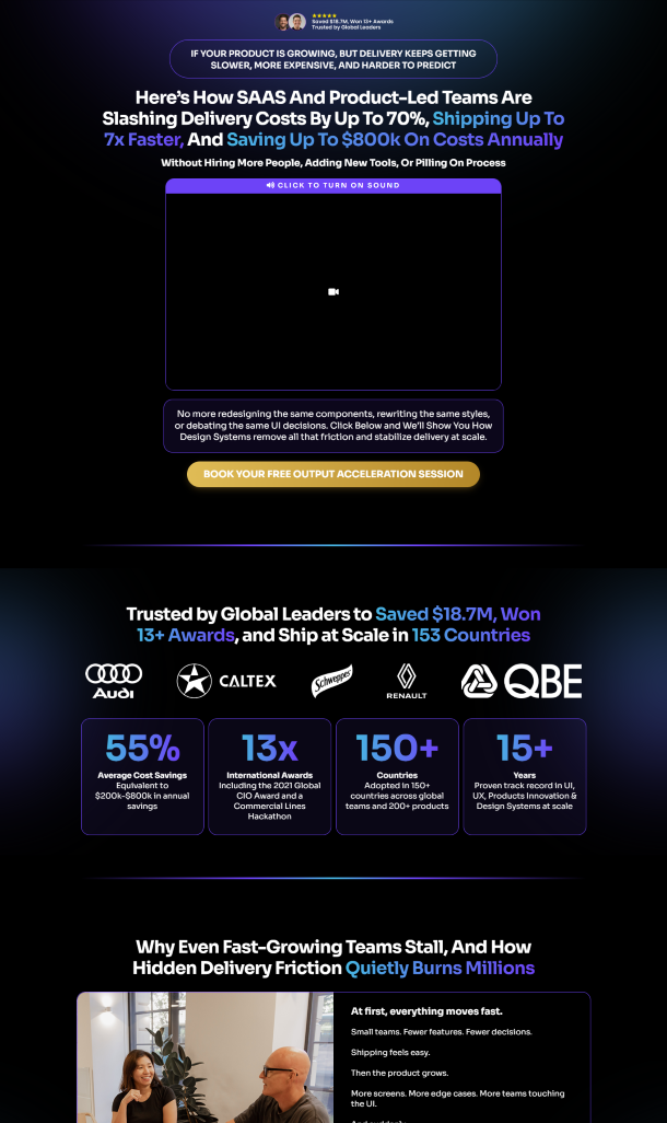 Want to know how much time, money, and opportunity your team is leaving on the table? In your Free Output Acceleration Session, we’ll show you, live, what’s slowing you down and exactly how your delivery system could change the game.