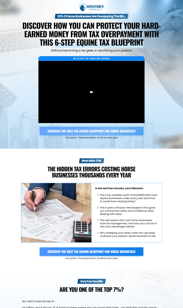 Full application funnel with long-form landing page, VSL, and nurture emails.