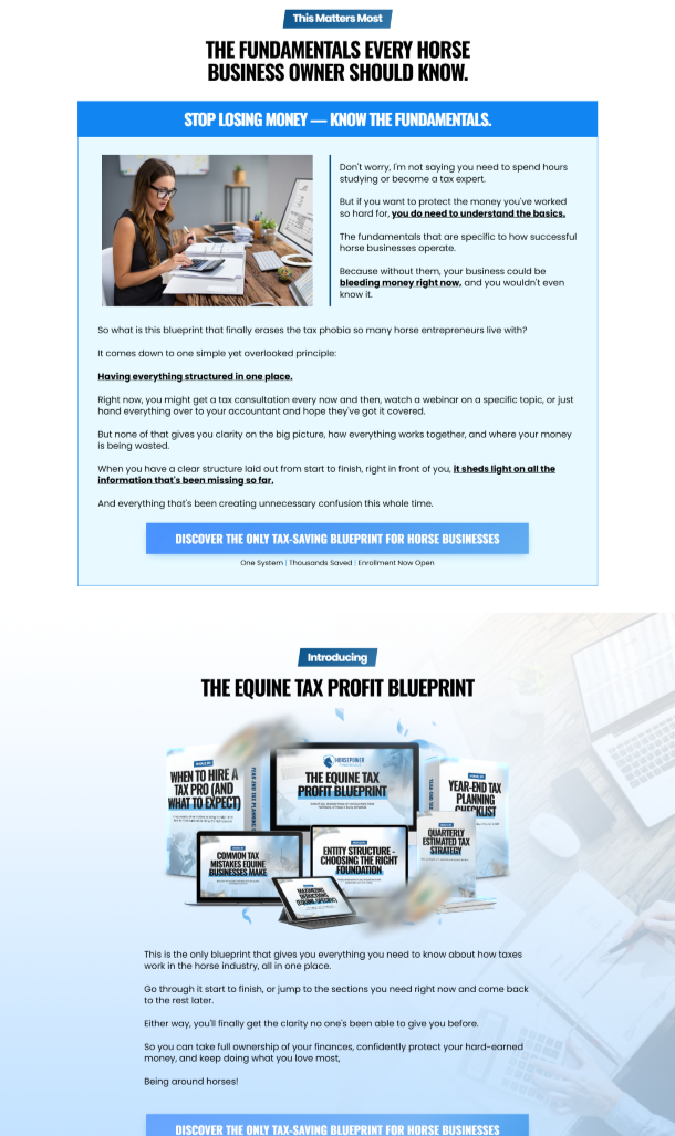 End-to-end sales system: funnel, copy, branding, website, brochures.